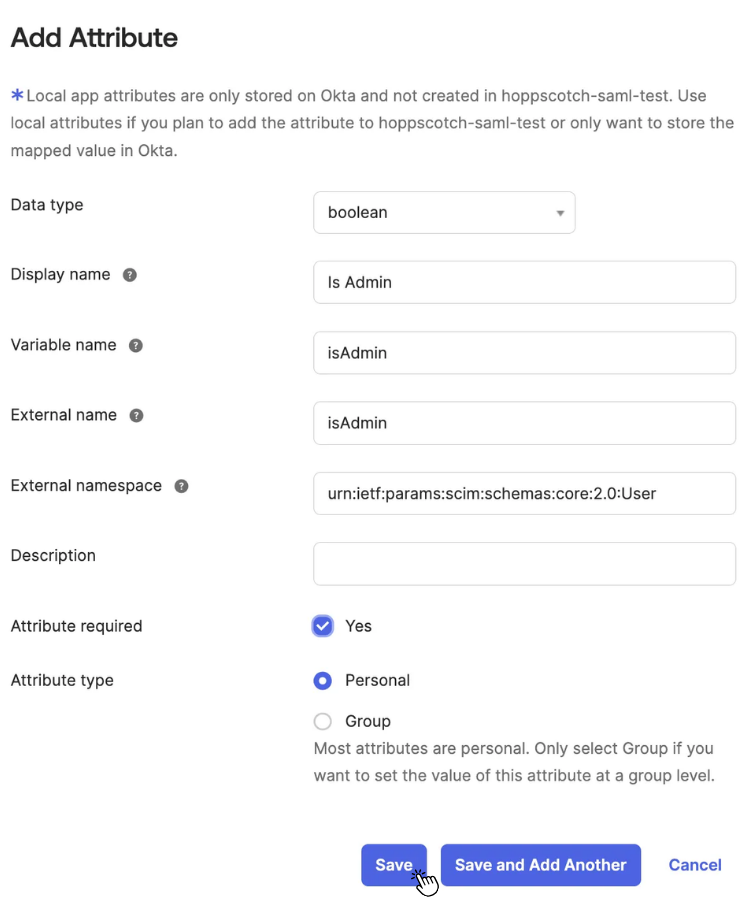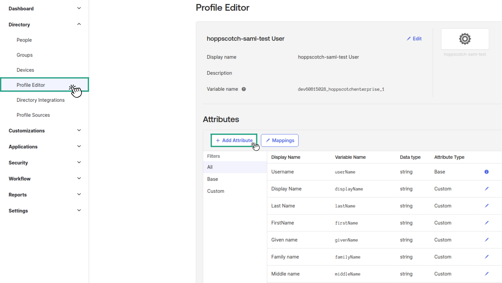 - Click Add Attribute to create a custom attribute you wish to include in the provisioning process.