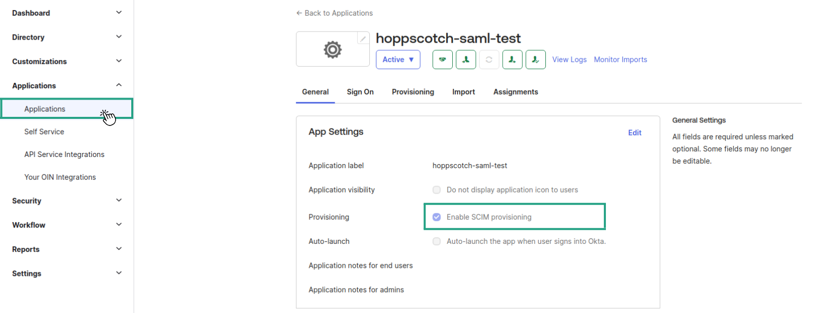 - Log in to your Okta dashboard, select your application, and navigate to the application’s settings.