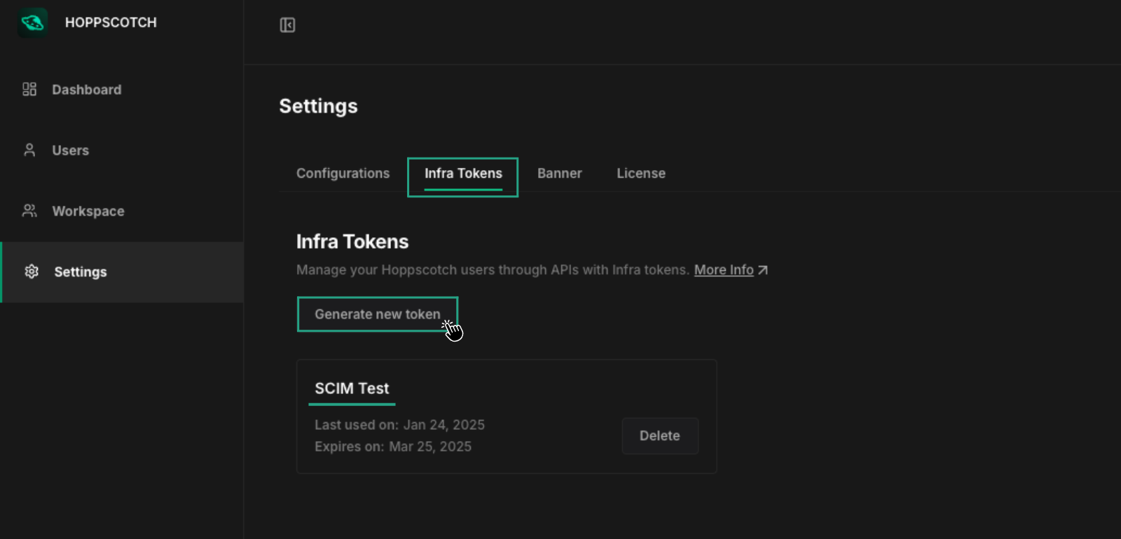 - Copy the InfraToken and store it securely, as it will be used to authenticate SCIM requests from your IdP.